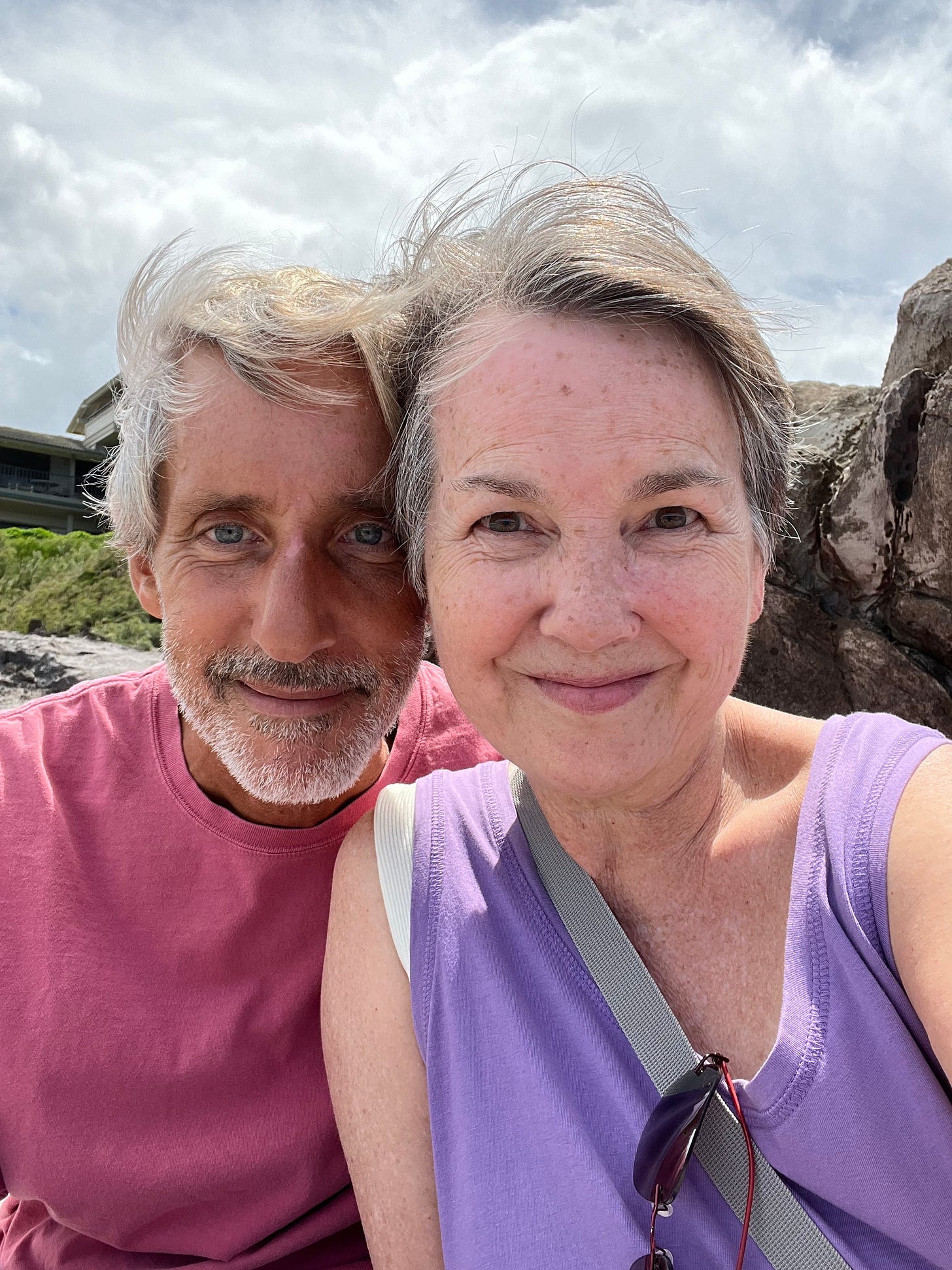 We’re in Hawaii. There are lots of old people. Retirees. They’re everywhere. He walks by the grounds of a hotel nearby (or any of the many beaches) eyeing the motionless bodies on lounge chairs and plays the game: Dead or sleeping? This makes him laugh. He even takes pictures.