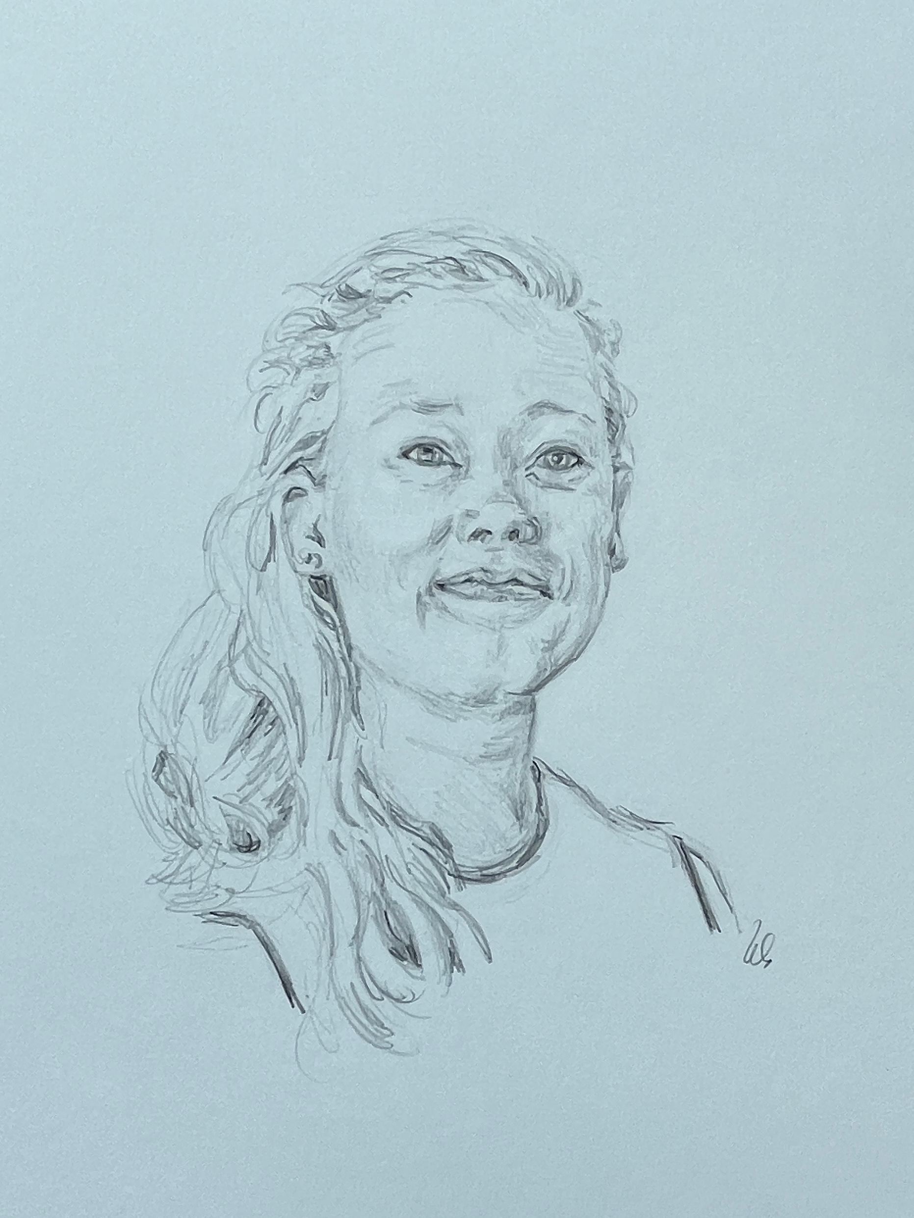I’ve been carrying Renee Nicole Good around with me. In my thoughts, in my art. I’ve done other memorial paintings and drawings for past tragedies. Sometimes, I don’t have it in me. Sometimes, it’s a comfort. Spending time with her sweet face was my way of honoring her. Art as prayer. I became absorbed in the mechanics, hyper-focused on light and line and shadow. Connecting with her while also maintaining a bit of technical distance. The drawing is lying on my kitchen table, so I see her every day.